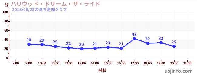 • ハリウッド・ドリーム・ザ・ライド$B$N(B2018年06月25日の待ち時間