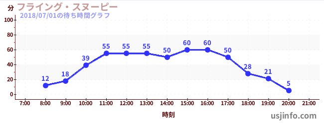 • フライング・スヌーピー$B$N(B2018年07月01日の待ち時間