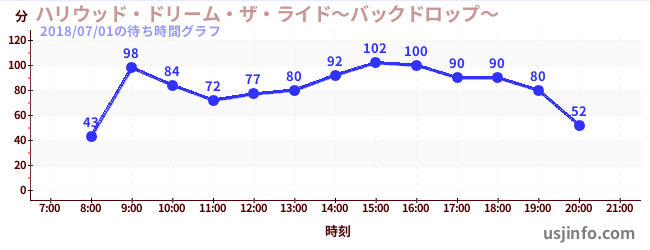 • ハリウッド・ドリーム・ザ・ライド〜バックドロップ〜$B$N(B2018年07月01日の待ち時間