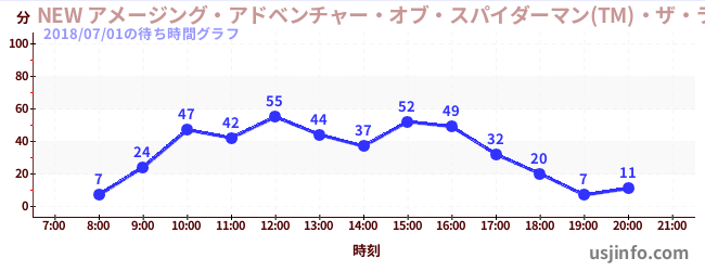 • NEW アメージング・アドベンチャー・オブ・スパイダーマン(TM)・ザ・ライド 4K3D$B$N(B2018年07月01日の待ち時間