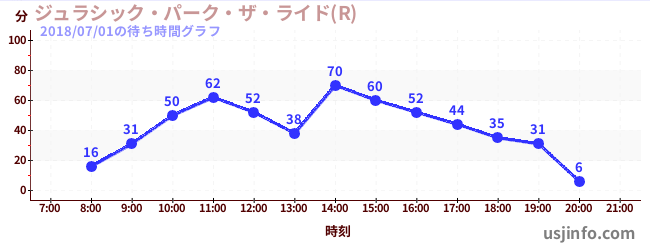 • ジュラシック・パーク・ザ・ライド(R)$B$N(B2018年07月01日の待ち時間
