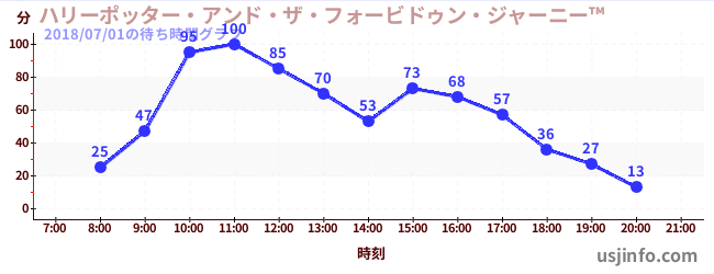 • ハリーポッター・アンド・ザ・フォービドゥン・ジャーニー™$B$N(B2018年07月01日の待ち時間