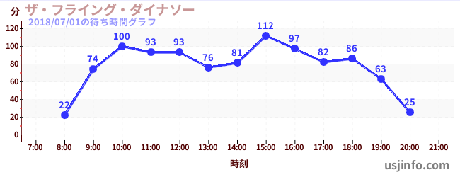 • ザ・フライング・ダイナソー$B$N(B2018年07月01日の待ち時間