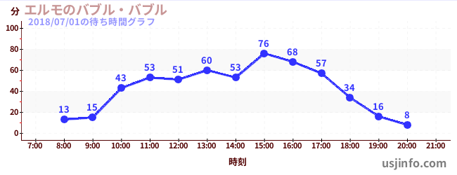 • エルモのバブル・バブル$B$N(B2018年07月01日の待ち時間