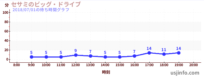 • セサミのビッグ・ドライブ$B$N(B2018年07月01日の待ち時間