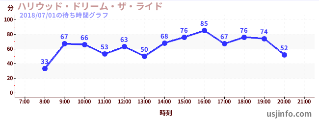 • ハリウッド・ドリーム・ザ・ライド$B$N(B2018年07月01日の待ち時間