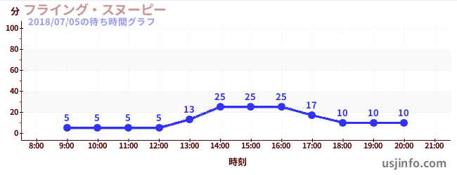 • フライング・スヌーピー$B$N(B2018年07月05日の待ち時間