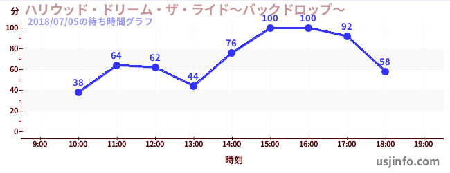 • ハリウッド・ドリーム・ザ・ライド〜バックドロップ〜$B$N(B2018年07月05日の待ち時間