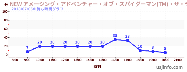 • NEW アメージング・アドベンチャー・オブ・スパイダーマン(TM)・ザ・ライド 4K3D$B$N(B2018年07月05日の待ち時間