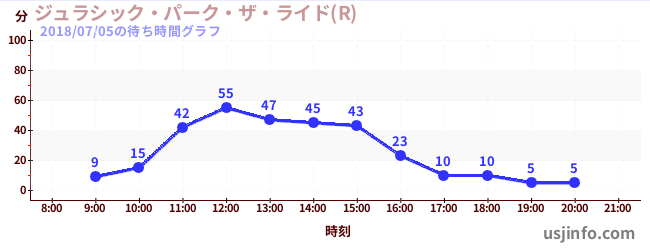 • ジュラシック・パーク・ザ・ライド(R)$B$N(B2018年07月05日の待ち時間