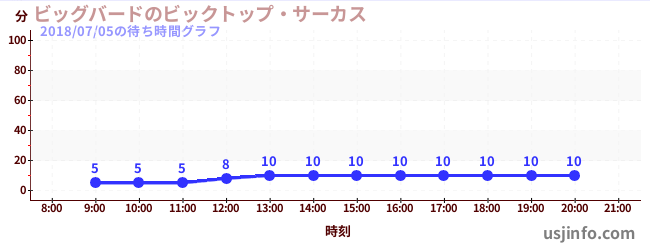 • ビッグバードのビックトップ・サーカス$B$N(B2018年07月05日の待ち時間