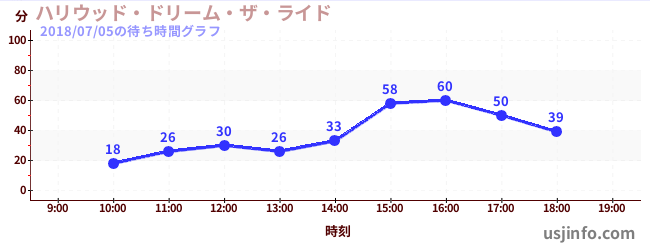 • ハリウッド・ドリーム・ザ・ライド$B$N(B2018年07月05日の待ち時間