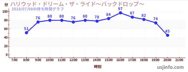 • ハリウッド・ドリーム・ザ・ライド〜バックドロップ〜$B$N(B2018年07月08日の待ち時間