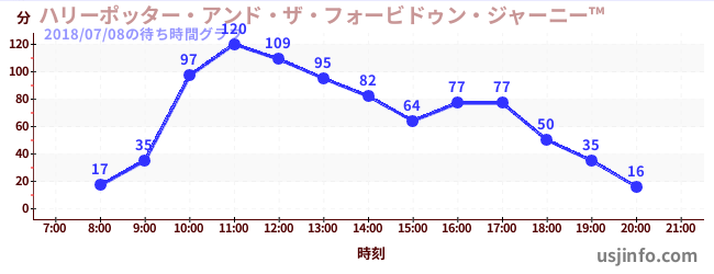 • ハリーポッター・アンド・ザ・フォービドゥン・ジャーニー™$B$N(B2018年07月08日の待ち時間