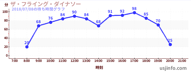 • ザ・フライング・ダイナソー$B$N(B2018年07月08日の待ち時間