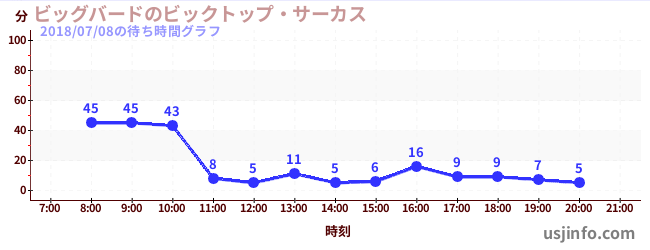 • ビッグバードのビックトップ・サーカス$B$N(B2018年07月08日の待ち時間