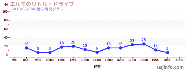 • エルモのリトル・ドライブ$B$N(B2018年07月08日の待ち時間