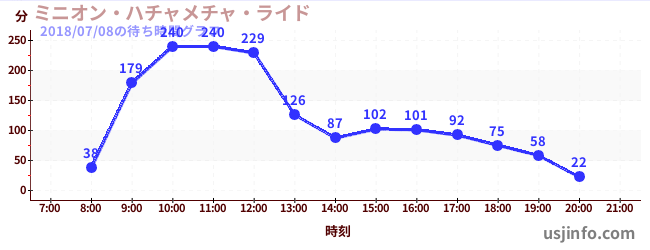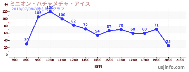 • ミニオン・ハチャメチャ・ライド$B$N(B2018年07月08日の待ち時間