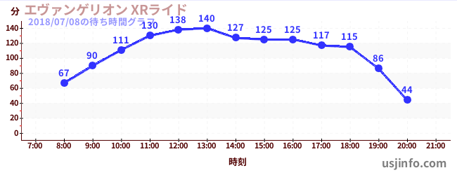 • エヴァンゲリオン XRライド$B$N(B2018年07月08日の待ち時間