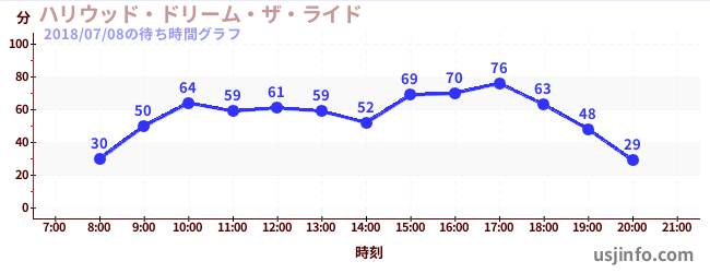 • ハリウッド・ドリーム・ザ・ライド$B$N(B2018年07月08日の待ち時間