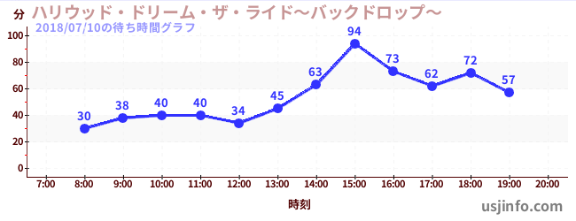 • ハリウッド・ドリーム・ザ・ライド〜バックドロップ〜$B$N(B2018年07月10日の待ち時間