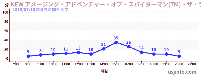 • NEW アメージング・アドベンチャー・オブ・スパイダーマン(TM)・ザ・ライド 4K3D$B$N(B2018年07月10日の待ち時間