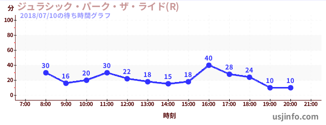 • ジュラシック・パーク・ザ・ライド(R)$B$N(B2018年07月10日の待ち時間