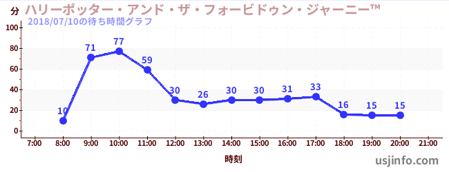 • ハリーポッター・アンド・ザ・フォービドゥン・ジャーニー™$B$N(B2018年07月10日の待ち時間