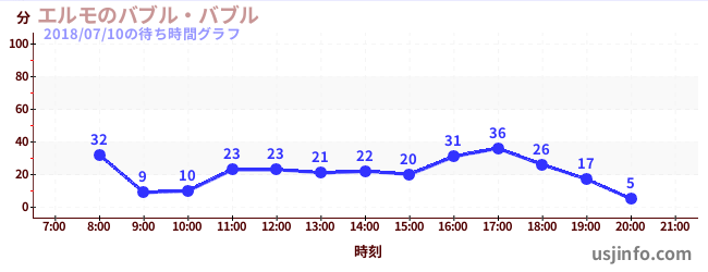 • エルモのバブル・バブル$B$N(B2018年07月10日の待ち時間