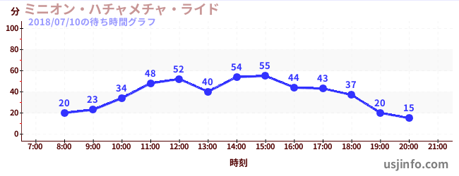 • ミニオン・ハチャメチャ・ライド$B$N(B2018年07月10日の待ち時間