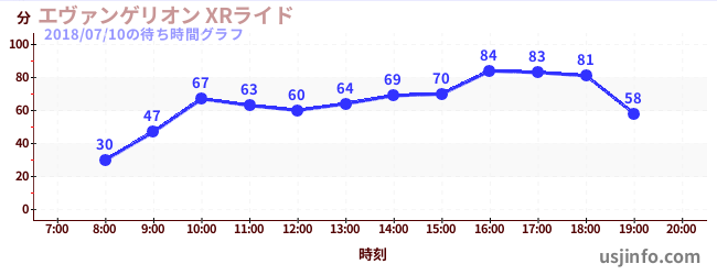 • エヴァンゲリオン XRライド$B$N(B2018年07月10日の待ち時間