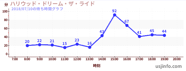 • ハリウッド・ドリーム・ザ・ライド$B$N(B2018年07月10日の待ち時間