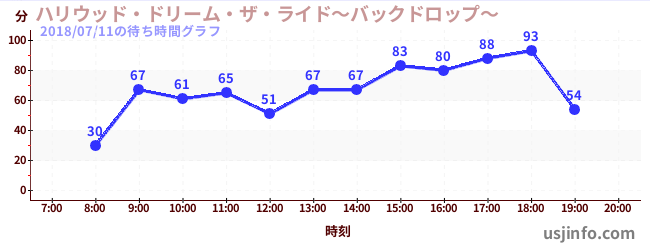 • ハリウッド・ドリーム・ザ・ライド〜バックドロップ〜$B$N(B2018年07月11日の待ち時間
