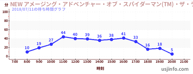 • NEW アメージング・アドベンチャー・オブ・スパイダーマン(TM)・ザ・ライド 4K3D$B$N(B2018年07月11日の待ち時間