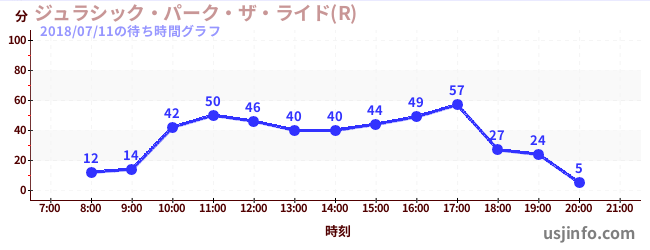 • ジュラシック・パーク・ザ・ライド(R)$B$N(B2018年07月11日の待ち時間