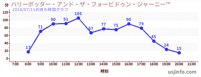 • ハリーポッター・アンド・ザ・フォービドゥン・ジャーニー™$B$N(B2018年07月11日の待ち時間