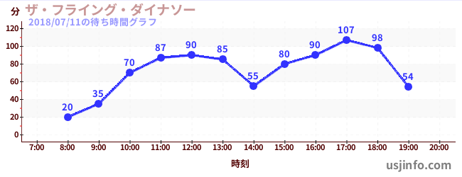 • ザ・フライング・ダイナソー$B$N(B2018年07月11日の待ち時間