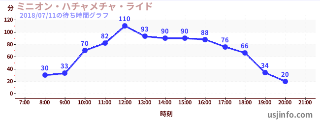• ミニオン・ハチャメチャ・ライド$B$N(B2018年07月11日の待ち時間