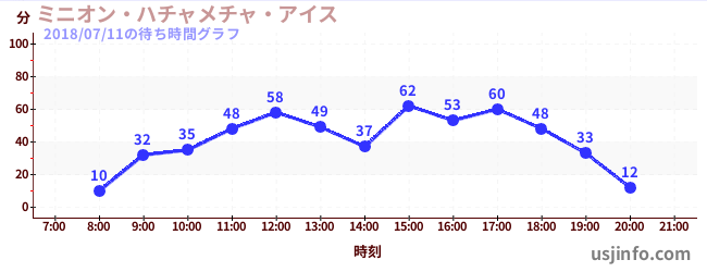 • ミニオン・ハチャメチャ・アイス$B$N(B2018年07月11日の待ち時間
