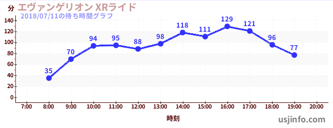 • エヴァンゲリオン XRライド$B$N(B2018年07月11日の待ち時間
