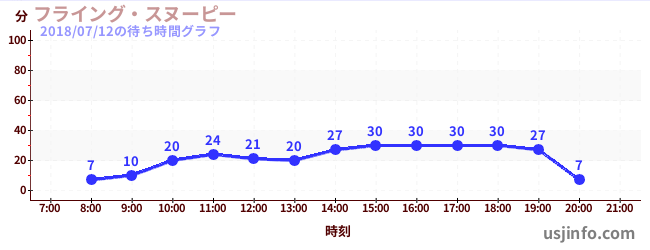 • フライング・スヌーピー$B$N(B2018年07月12日の待ち時間