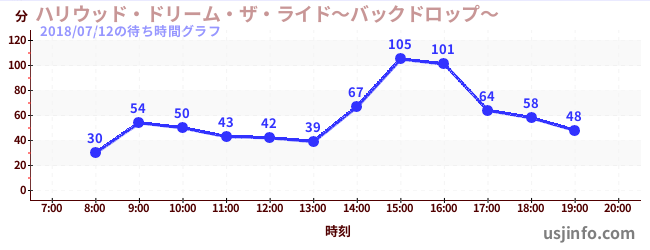• ハリウッド・ドリーム・ザ・ライド〜バックドロップ〜$B$N(B2018年07月12日の待ち時間
