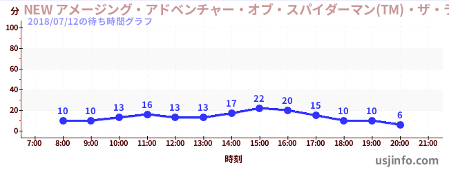 • NEW アメージング・アドベンチャー・オブ・スパイダーマン(TM)・ザ・ライド 4K3D$B$N(B2018年07月12日の待ち時間