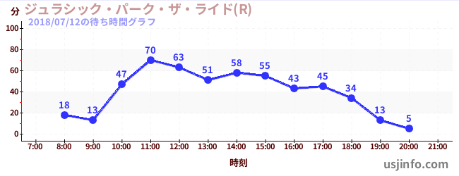 • ジュラシック・パーク・ザ・ライド(R)$B$N(B2018年07月12日の待ち時間