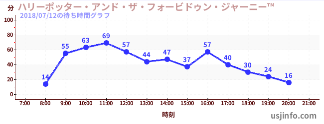 • ハリーポッター・アンド・ザ・フォービドゥン・ジャーニー™$B$N(B2018年07月12日の待ち時間