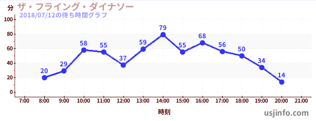 • ザ・フライング・ダイナソー$B$N(B2018年07月12日の待ち時間