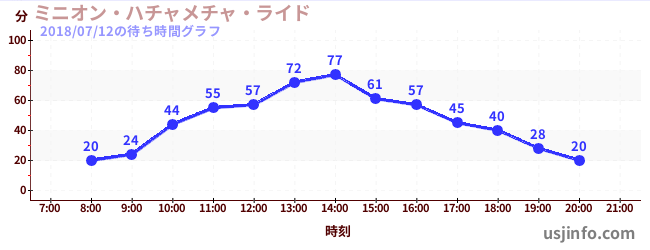 • ミニオン・ハチャメチャ・ライド$B$N(B2018年07月12日の待ち時間