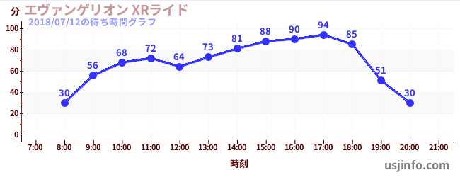 • エヴァンゲリオン XRライド$B$N(B2018年07月12日の待ち時間