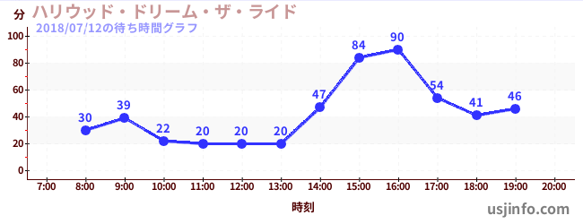 • ハリウッド・ドリーム・ザ・ライド$B$N(B2018年07月12日の待ち時間