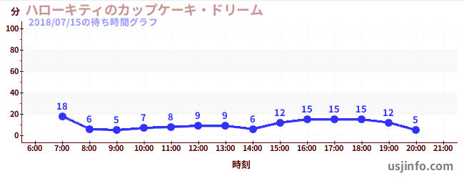 • ハローキティのカップケーキ・ドリーム$B$N(B2018年07月15日の待ち時間